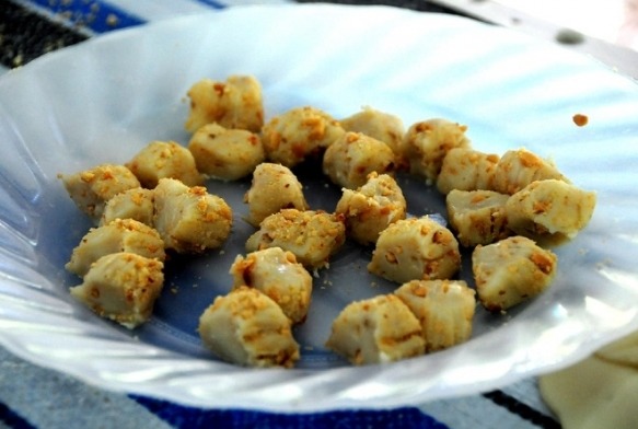 (사진=VnExpress/Mr. True) 볶은 땅콩과 버무린 베트남 코코넛캔디. 베트남의 대표 간식 중 하나인