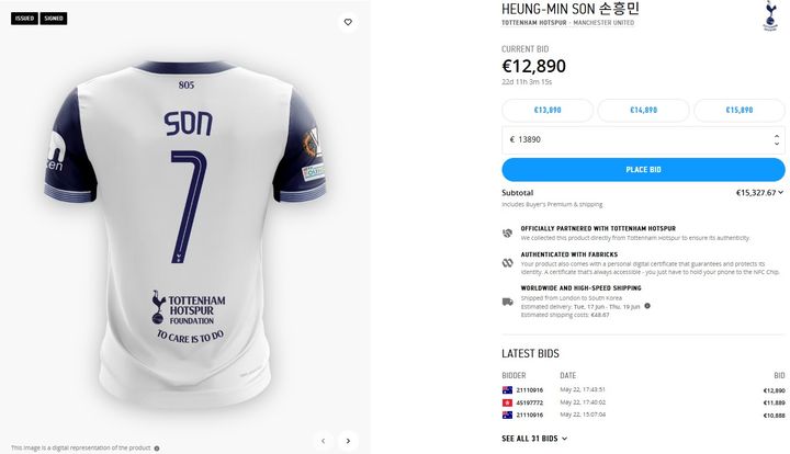 경매는 22일간 진행되며, 수익금 일부는 토트넘 훗스퍼 재단에 기부될 예정이다.
