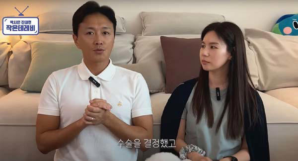 100% 암 종양이어서 다른 데로 전이되기 전에 빨리 수술해야 하는 상황"이라며 "다행인 건 수술하고 관리를 잘 하면 좋아진다 해서 바로 수술을 결정했다"고 했다. 또한 "여러분 이게(갑상선암) 증상이 없다"며 "근데 2년 전부터 약간 피곤한 증상은 있었다"고 했다. 이어 "원래 안 그랬는데 피로감이 좀 빨리 왔다, 그리고 좀 빨리 지치는 것 같다"고 말했다. 더불어 다행인 것이 운동을 많이 해 그나마 피곤함을 덜 느낀 것으로 추정된다며 시청자들에게 규칙적인 운동을 강조했다.