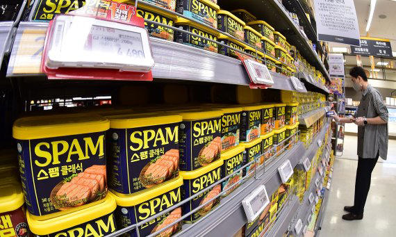 대형마트에 통조림 햄이 진열돼 있다. 뉴시스 © 제공: 파이낸셜뉴스