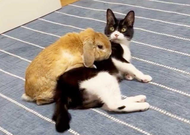 천적 관계를 뛰어넘은 토끼와 고양이의 놀라운 우정