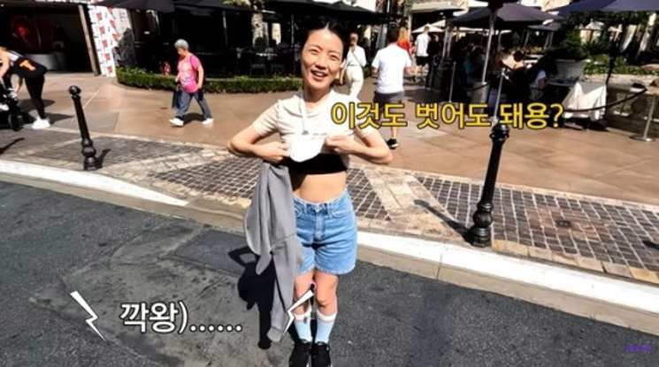 산타모니카에서도 탈의 충동을 보였다. 안영미는 "미국 여자들한테 질 수 없지. 이게 바로 K-가슴이다"라며 윗옷을 벗었고 남편은 "이 모든 걸 남편이 찍고 있다"며 한숨을 쉬었다.