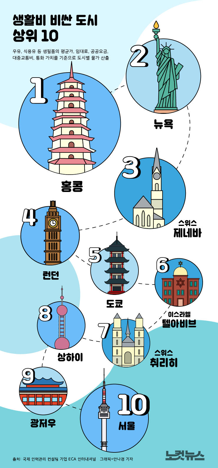 생활비 비싼 도시 상위 10곳은?
