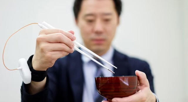 일본 메이지대 미야시타 호메이 교수 연구팀이 전류를 이용해 짠맛을 강화하는 젓가락을 개발했다. 짠 음식을 먹지 않아도, 음식에서 짠맛이 난다고 착각하게 돕는 것이다.