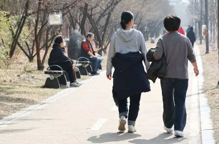 [사진 연합뉴스] 지난 3월 11일 서울 성동구 청계천 매화거리에서 시민과 직장인들이 산책을 하고 있다. /[ⓒ이코노미스트 김윤주 기자]