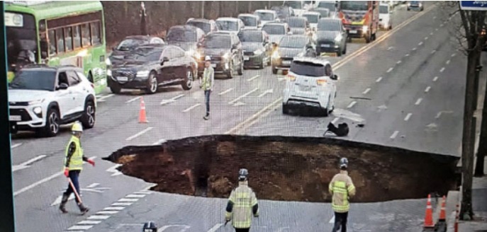 서울 강동구 ‘4개 차로 걸친’ 싱크홀 발생 “차량 추락”
