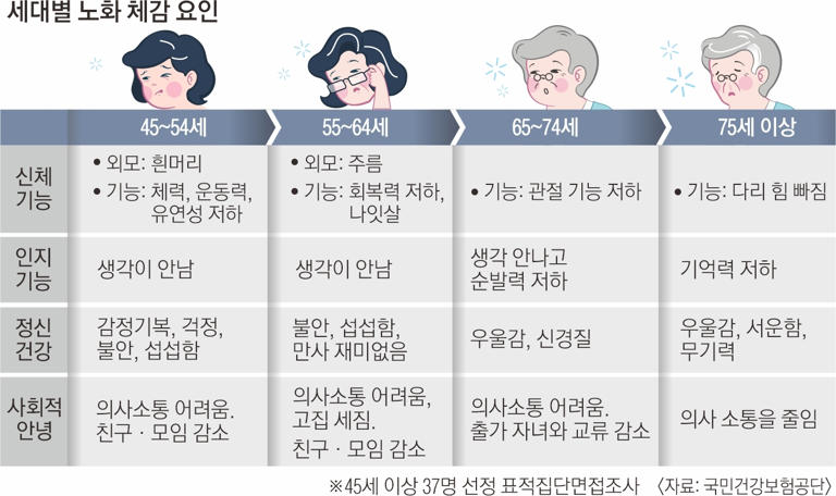 “45세부터 노화 체감”… 깜박깜박 잦고, 모임 줄어