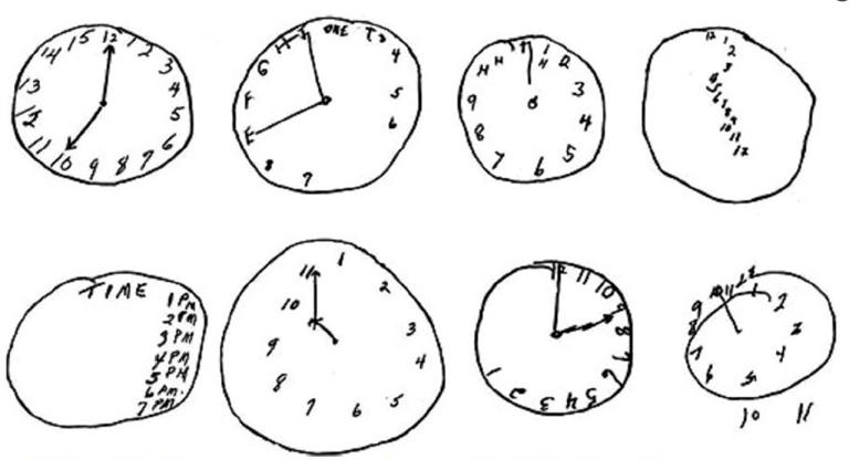 멕시코 국립 신경과·신경외과 연구소 신경학자 예수스 라미레스-베르무데스 박사는 치매 환자들에게 실시한 실제 '시계 그리기' 테스트 결과 사진을 공유하면서 "시계 그리기는 치매를 포함한 신경계 질환 여부를 식별하는 '가장 쉽고 저렴한 방법 중 하나'다"라고 설명했다.