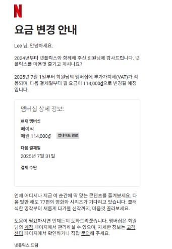 (캡쳐=이승윤) 넷플릭스가 베트남 사용자들에게 보낸 서비스 가격 인상 안내문. 넷플릭스의 베트남 가입자 서비스 가격