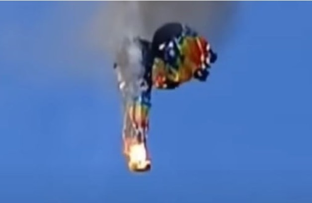 상공서 불타는 열기구 추락