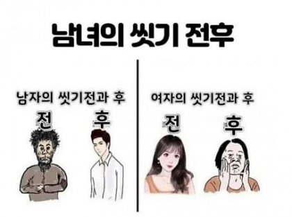남녀의 씻기 전후
