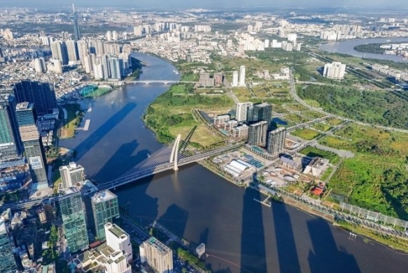사이공강을 끼고 마주한 호치민시 1군 및 투득시 투티엠신도시 전경. 호치민시가 국제금융센터(IFC) 건설에