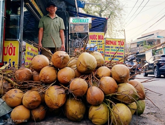 호치민시의 과일상이 판매중인 코코넛. 베트남 코코넛 가격이 공급정체 속에 수요 급증으로 급등세를 보이고 있다.(사진=VnExpress/Thi Ha)
