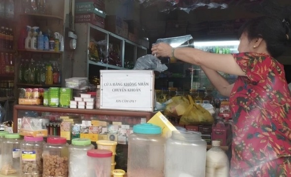 베트남 북부 하이퐁시의 한 잡화점에 계좌이체를 받지 않는다는 알림판이 비치돼있다. 이달 들어 베트남 전국 곳곳에서