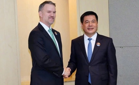 19일 베트남 공상부에 따르면, 베트남정부 대표 협상단을 이끌고 있는 응웬 홍 지엔(Nguyen Hong Dien) 공상부 장관은 지난 16일(현지시간) 미국에서 제이미슨 그리어(Jamieson Greer) 미국 무역대표부(USTR) 대표 등과 고위급 대면 협상을 벌였다.