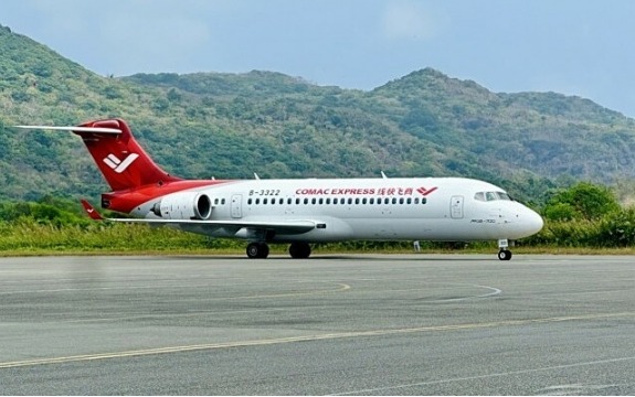 지난해 3월 꼰다오공항의 주기중인 중국 코맥ARJ21기(C909). 베트남 LCC 비엣젯항공이 수도 하노이와 남부