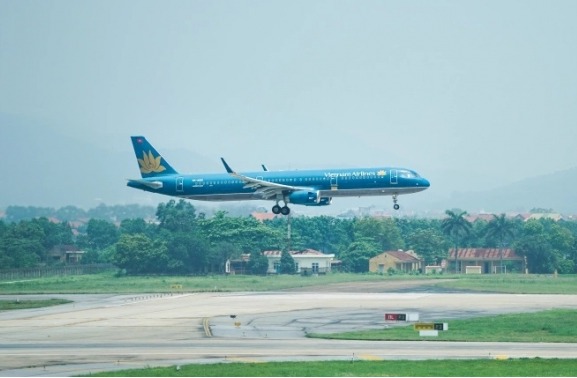 하노이 노이바이공항에 착륙중인 베트남항공 여객기. 베트남 항공업계가 내달 통일절 연휴 여객 수요 충족을 위해 평소보다