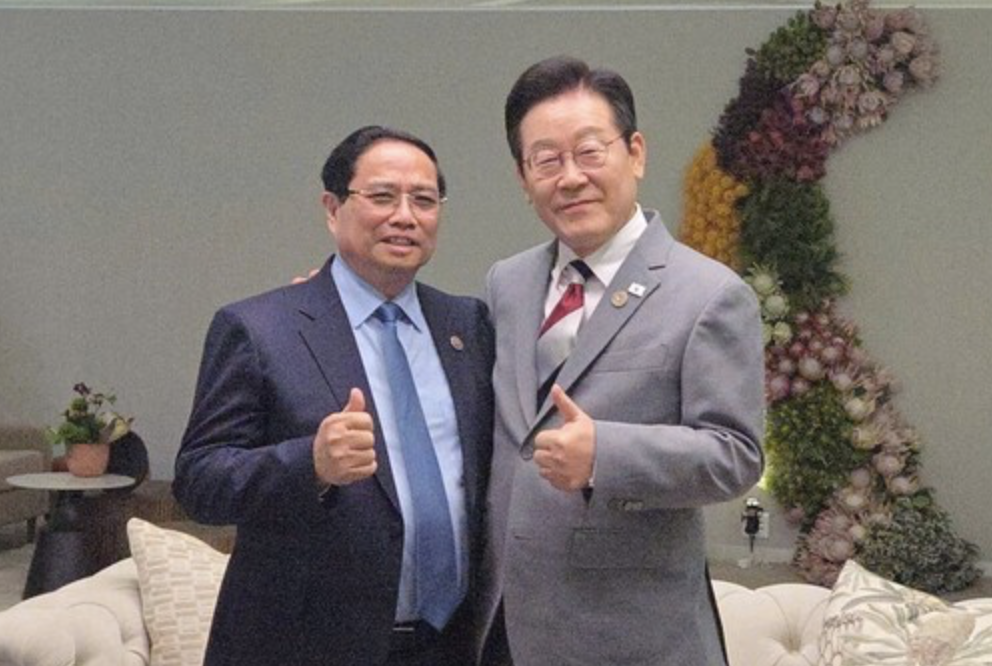 주요 20개국(G20) 정상회의 참석차 16~24일 중동·아프리카 3개국 순방에 나선 찐 총리는 22일(현지 시간) 남아프리카공화국 요하네스버그에서 이재명 대통령과 약식 회담을 갖고 양자 협력 방안과 공동 관심사인 국제 문제에 대한 의견을 교환했다.