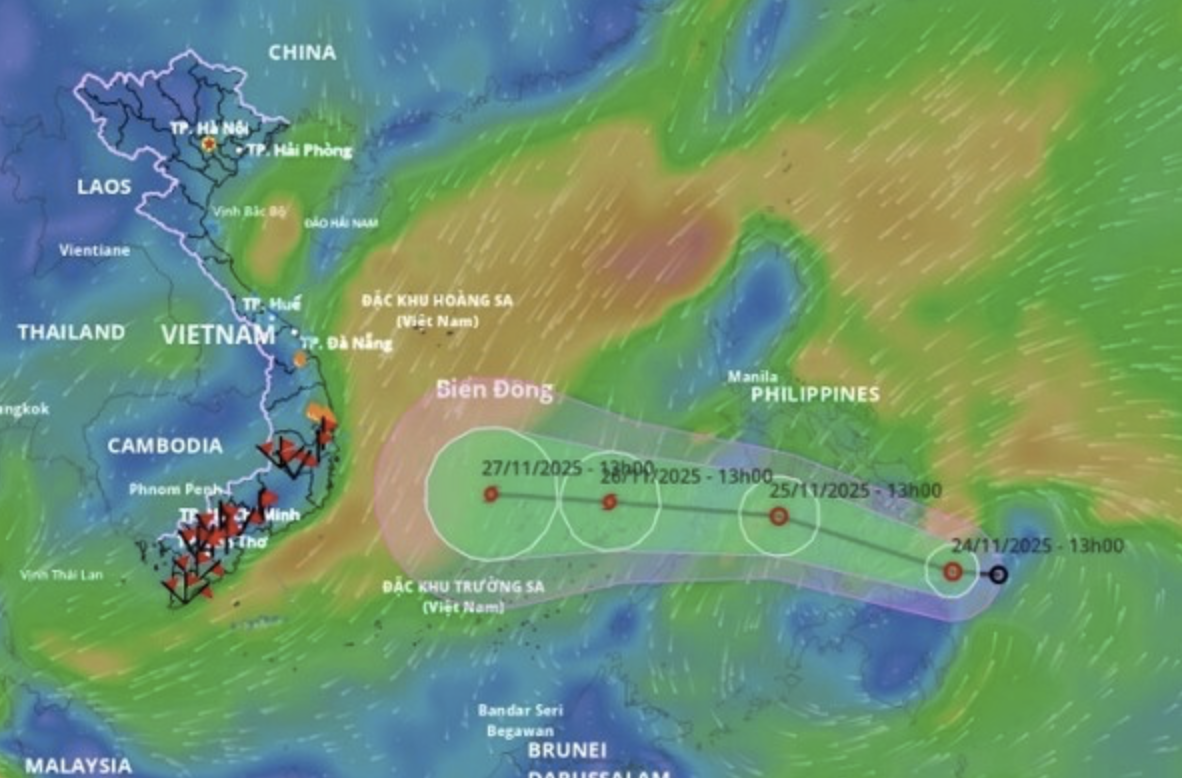 베트남국가수문기상예보센터(기상청)은 24일 “열대성 저기압이 필리핀 중부 동쪽 방면 해상에서 최대 풍속 61km/h, 7급의 세력으로 서북서 방향 20km/h 속도로 이동 중”이라며 “열대성 저기압은 25일 오후 1시 현재 강도와 방향을 유지하며 시속 20~25km로 동해(남중국해)로 진입할 것으로 보인다. 26일이면 쯔엉사(Truong Sa) 특별지대 북동쪽 지역에서 8급 태풍으로 발달할 것”이라고 예보했다.